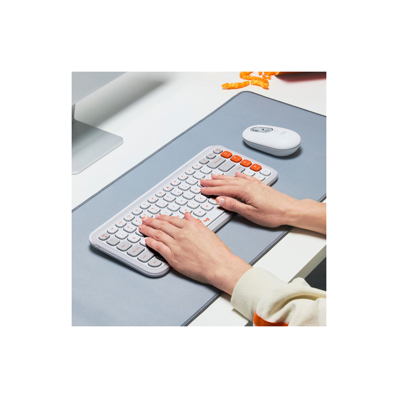 Glatke, niskoprofilne tipke bežične tipkovnice dizajnirane su za precizno, udobno i tiho tipkanje. Na desnoj strani nalaze se prilagodljive tipke koje olakšavaju rad, igru i zabavu. Tipke možete prilagoditi pomoću aplikacije Logi Options+.