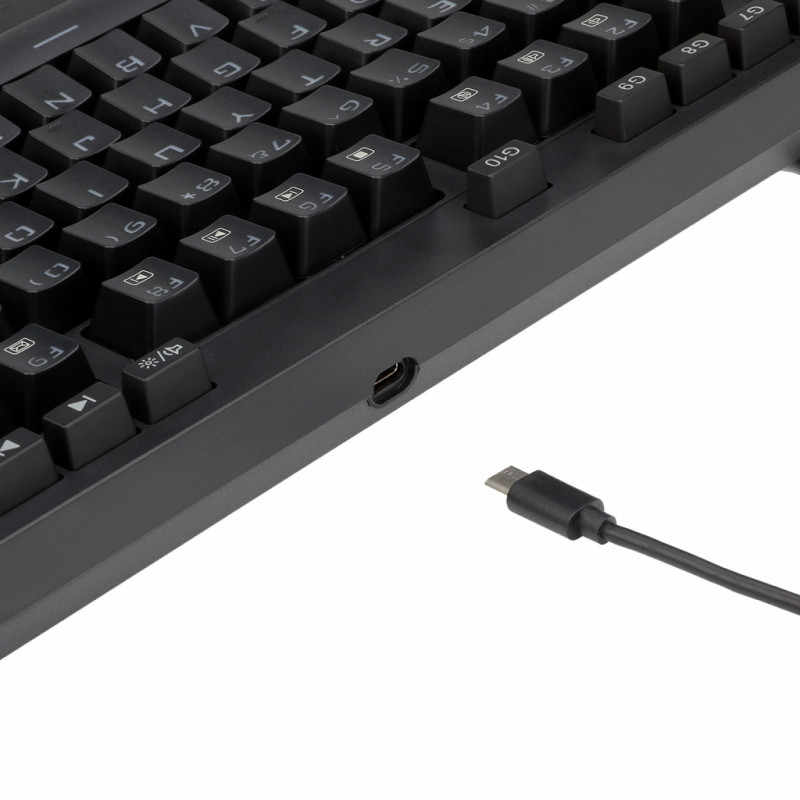 REDRAGON VISHNU K596 RGB mehanička je tipkovnica za igre koja ima dvostruku povezanost. Ova mehanička igraća tipkovnica s osloncem za dlanove može se bežično povezati putem USB ključa ili pomoću priloženog USB kabela. Redragon Vishnu tipkovnica ima dvostruko ubrizgane poklopce tipki i metalnu bazu. Odvojiva magnetska podloga za zglob pruža maksimalnu udobnost prema vašim željama. Redragon je dizajnirao Vishnua bez numeričkih tipki kako bi smanjio količinu radnog prostora na stolu i učinio ga kompaktnim i prijenosnim. Redragon VISHNU sadrži makro tipke s lijeve i gornje strane tipkovnice, gumb za snimanje i postavljanje vlastitih makronaredbi. Kontrole medija nalaze se u gornjem desnom kutu tipkovnice s širokim klizačem za glasnoću koji doprinosi funkcionalnosti tipkovnice. Tehnički podaci: Žičana ili bežična povezanost Kompaktni USB ključ 2,4 GHz Izmjenjivi USB Type-C kabel Crveni prekidači OUTEMU Devet makro tipki i četiri medijske tipke Odvojivi oslonac za zglob Živahno RGB osvjetljenje s više načina i postavki Tehnički podaci: Veličina: 38,4 x 21,2 x 3,5 cm Težina: 1258g US layout