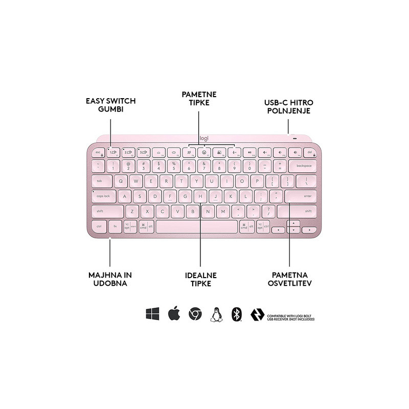 Iznimno kompaktan dizajn - tipkovnica osigurava udobnije držanje i zauzima manje prostora na stolu, koji se može koristiti za miš