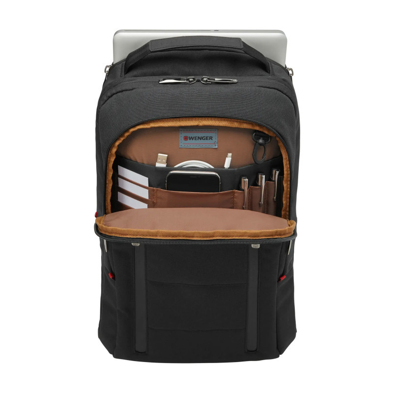 - The optimum blend of style and function, the City Traveler is your must-have backpack for overnight business trips. The expandable clothing compartment neatly stores your packing, while the padded laptop compartment with tablet pocket will protect up to a 16” laptop. An essentials organizer takes care of power cords, chargers and business cards, while the quick access pockets with water-resistant zippers make everyday items easy to find. Versatile as well as sleek, this bag has a mesh curtain that folds down for use as a regular backpack.