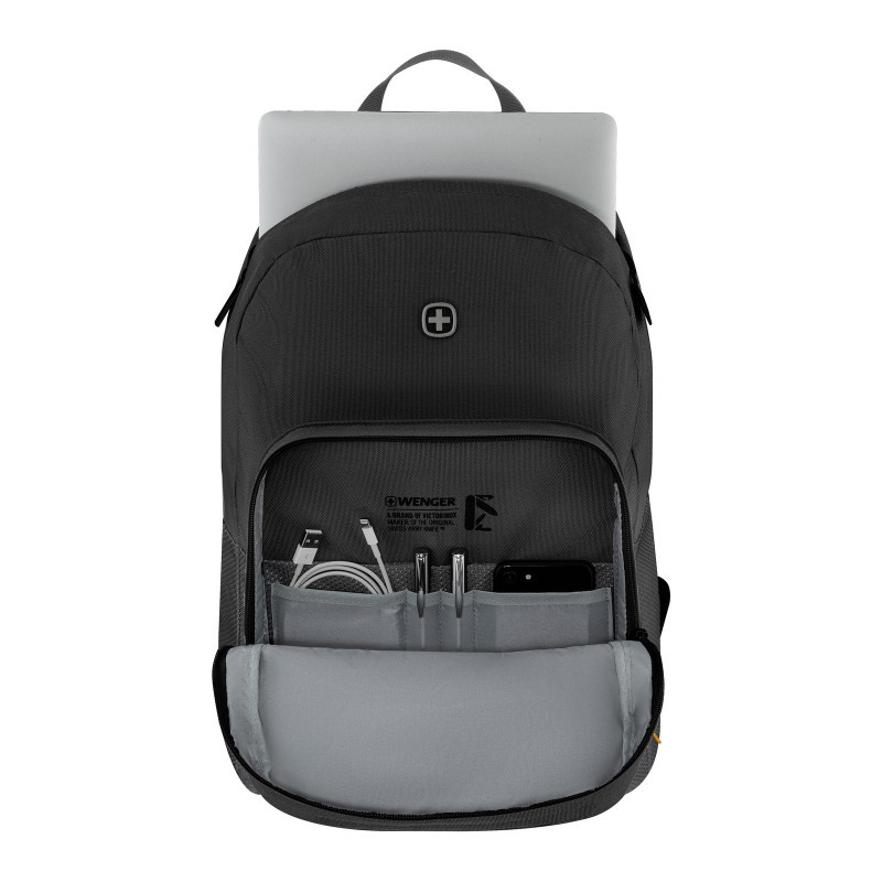 - Essentials organizer keeps power cords, chargers and business cards neat and accessible