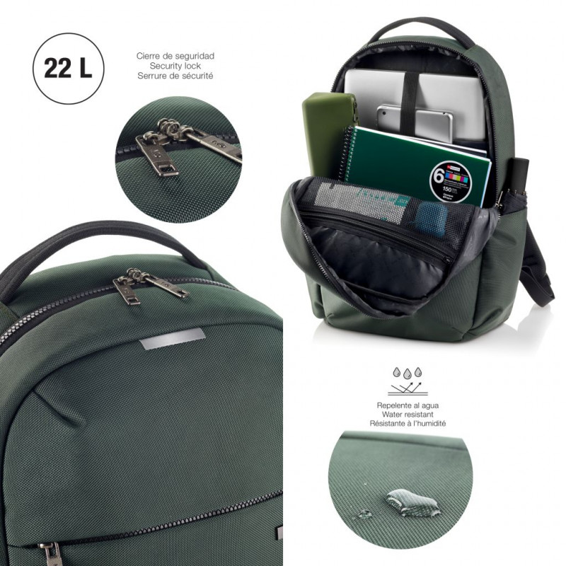 Ovaj prostrani i svestrani zeleni ruksak dizajniran je za prijenosno računalo, savršen za najzahtjevnije korisnike. S više džepova i pretinaca, omogućuje izvrsnu organizaciju svih potrebnih stvari, uključujući sigurno mjesto za prijenosno računalo. Izrađen od visokokvalitetnog poliestera s vodootpornim premazom, pruža dugotrajnu zaštitu u svim uvjetima. S kapacitetom od 22 litre i dimenzijama 380 x 460 x 130 mm, nudi dovoljno prostora za svakodnevnu upotrebu. Prilagodljiv za montažu na kofer, čineći ga idealnim suputnikom za poslovna putovanja i dinamičan životni stil.