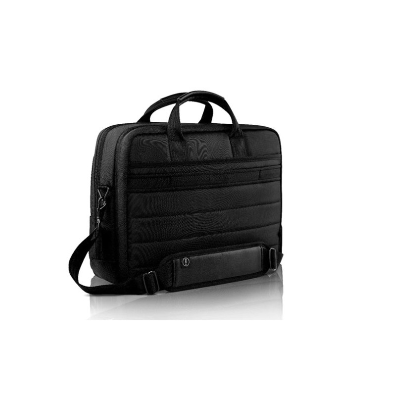 Product Type Notebook carrying case Dimensions 39cm x 13,5cm x 29cm Weight 1.13kg Notebook Compatibility Fits most laptops with screen sizes up to 15.6" Notebook Compatibility Dimensions Max laptop dimension: 38cm x 26cm x 2.5cm Additional Compartments Battery charger Features Detachable strap, water resistant, foam padding, padded shoulder strap, shock absorbing lining, anti-scratch inner lining Carrying Strap Shoulder carrying strap, trolley strap, top carry handle Product Material Polyester Capacity 12 litres Colour Black with metal logo