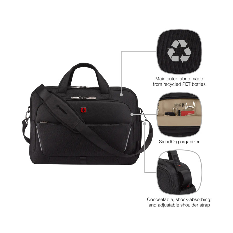 - Predstavljamo Meteor Brief 16–17, vaše idealno rješenje za pametnu organizaciju. Izrađena od glavne vanjske tkanine dobivene reciklažom PET boca, ova poslovna torba spaja dizajn i praktičnu funkcionalnost. Triple Protect pretinac za laptop odgovara uređajima od 16" do 17", dok posebni džep za tablet dodatno osigurava vaše uređaje. Prostrani glavni pretinac sadrži razdjelnike za dokumente, a SmartOrg organizator omogućuje uredno spremanje osnovnih stvari. S prednjim i QuickAccess džepovima za brzi pristup često korištenim predmetima te skrivenim, podstavljenim i podesivim remenom za nošenje preko ramena, Meteor Brief 16–17 savršen je suputnik u pokretu. Dodatno, Pass-Thru traka za kofer olakšava putovanje s više torbi.