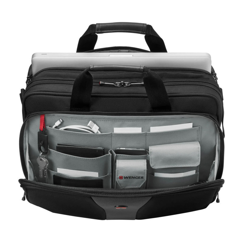 - The Legacy 16'' Double Gusset Computer Case is a well thought-out bag. Legacy has SwissGuard laptop protection, a checkpoint friendly opening system and a full-feature organizer which makes it a reliable partner for business travelers - Fits up to most 16" notebooks - Checkpoint-friendly laptop compartment - SwissGuard computer protection - Full-feature organizer - Soft-grip padded handles - Tear-resistant shoulder strap - Net weight: 1.09 kg - Luggage type: Briefcases - Outer material: Polyester - Capacity: 15 l