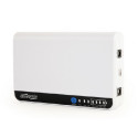 Gembird UPS for DC devices, 12 or 15 V, 18 W, white - Up to 70 minutes backup power for your router, modem, security camera, etc Surge protected output protects your equipment against harmful power surges, lightning strikes and short-circuits LED visual alarms and status indication Internal replaceable Li-battery with overcharge and over-discharge protection Input voltage: 12 VDC ( - 1V), 2.0 A ( - 0.1A) (adapter is not included) DC input and output sockets: 5.5 x 2.1 mm Output voltage: 12V DC 1.5A or 15V DC 1.2A - 5% (manual switch) Output power: max 18 W Built-in battery: ternary Lithium battery 18650 type of 2200 mAh x 3 pcs, protected, replaceable under cover, charging time: 1 hour (90%)