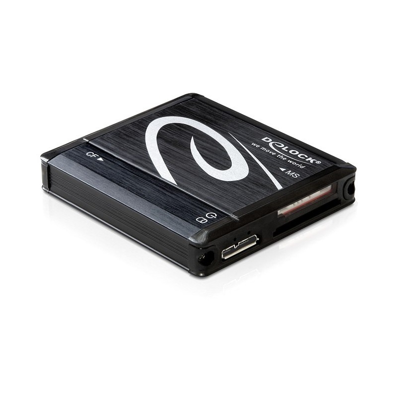 This Card Reader by Delock enables you to read and write 64 different memory cards on your laptop or PC. The Card Reader can be connected to the USB 3.0 interface in order to achieve a faster data transfer rate of up to 5 Gbps (SuperSpeed). Furthermore the USB 3.0-A connector is compatible to its forerunners USB 2.0 and USB 1.1.