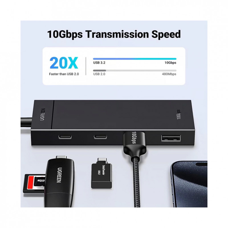 Prijenos podataka od 10 Gbps: USB C 3.2 čvorište s 4 priključka podržava brzinu prijenosa podataka do 10 Gbps. To je dovoljno brzo za prijenos datoteke od 20 GB u samo 16,4 sekunde, što uvelike štedi vaše vrijeme čekanja.
