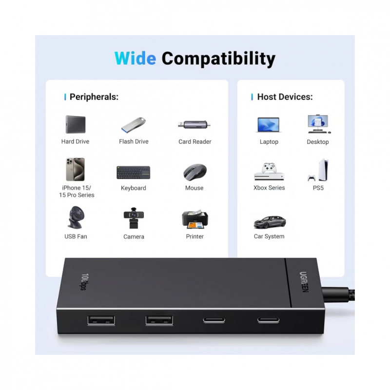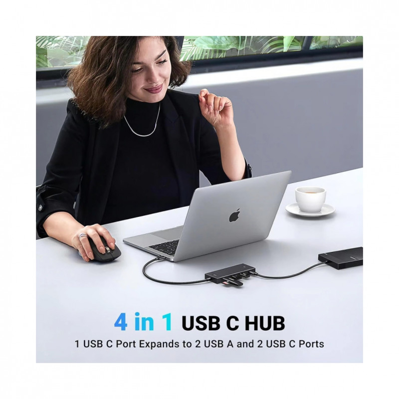 USB C razdjelnik s 4 priključka: 4-u-1 USB C čvorište pretvara jedan od USB-C priključaka vašeg prijenosnog računala u 2 USB-C 3.2 i 2 USB-A 3.2 podatkovna priključka. Savršeno povežite sve svoje USB periferne uređaje u svakodnevnom tijeku rada kako biste zadovoljili svoje sadašnje i buduće potrebe. (Napomena: USB-C priključci ne podržavaju video izlaz ili punjenje)