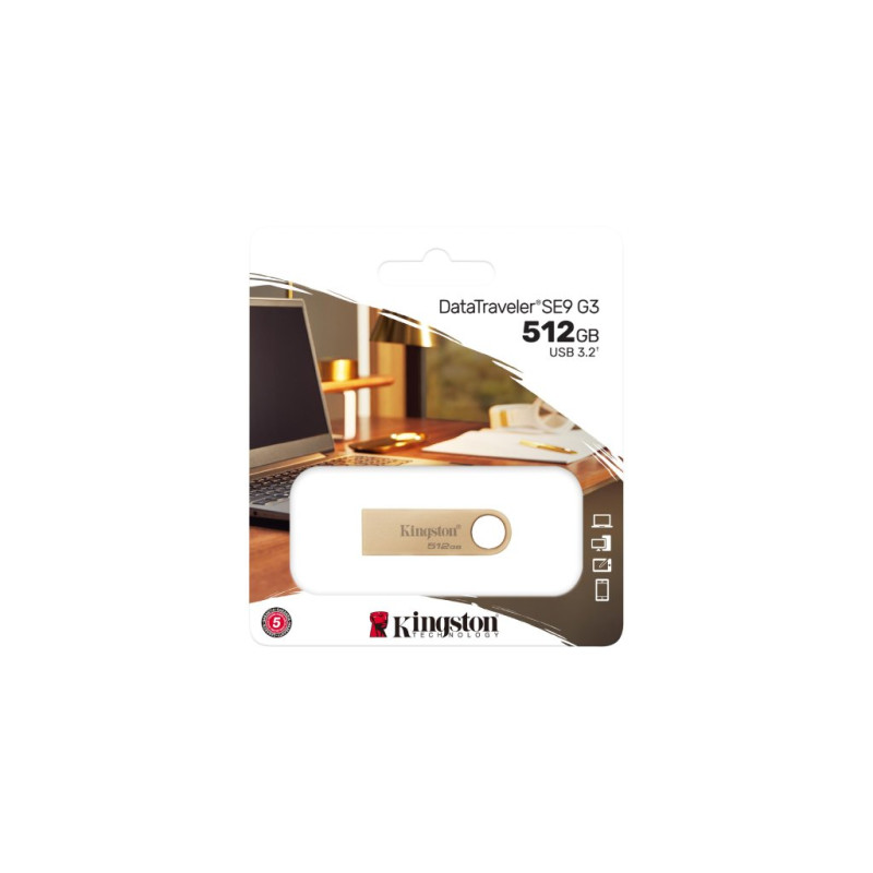 Kingston FD DTSE9G3/512GB Metal USB 3.2 Gen 1High speeds up to 220MB/s read and 100MB/s write