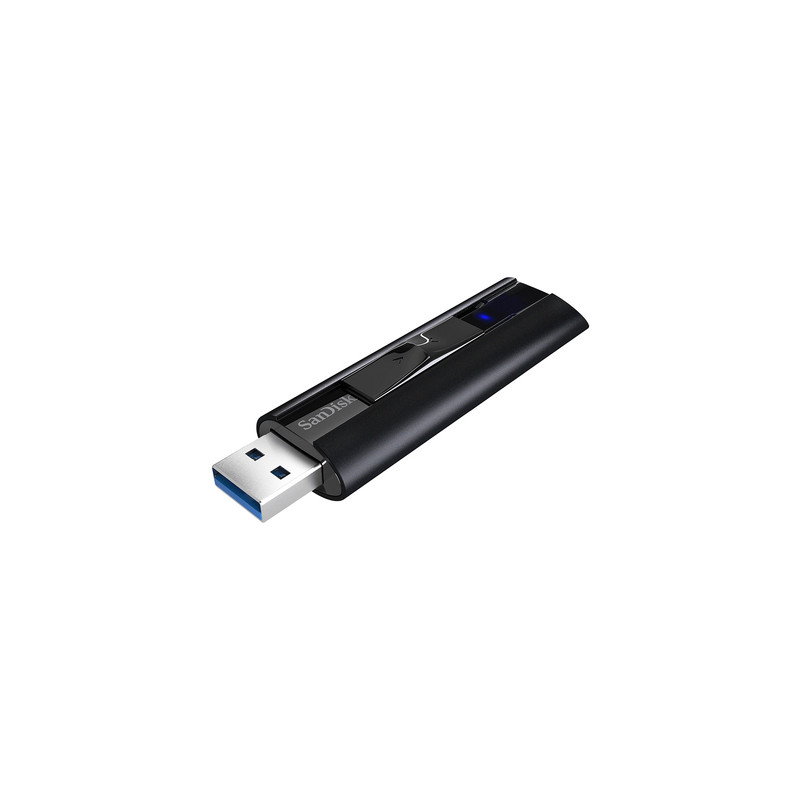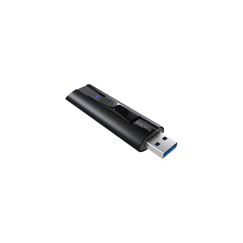 SanDisk Extreme PRO. Kapacitet: 512 GB, Sučelje uređaja: USB Tip-A, USB verzija: 3.2 Gen 1 (3.1 Gen 1), Brzina čitanja: 420 MB/s, Brzina zapisivanja: 380 MB/s. Veličina: Klizni. Zaštita lozinkom. Boja proizvoda: Crno