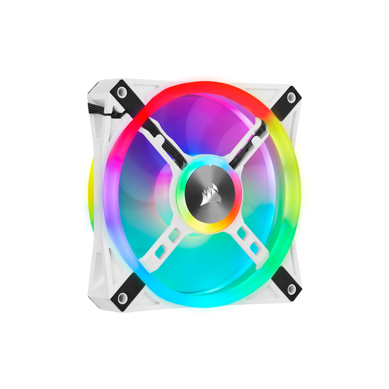 Corsair iCUE QL120. Tip: Ventilator, Promjer ventilatora: 12 cm, Brzina okretanja (min): 525 RPM, Brzina okretanja (max): 1500 RPM, Razina buke (velika brzina): 26 dB, Maksimalni protok zraka: 41,8 cfm, Maksimalni tlak zraka: 1,55 mmH2O. Napon: 6 - 13.2 V. Boja proizvoda: Bijelo