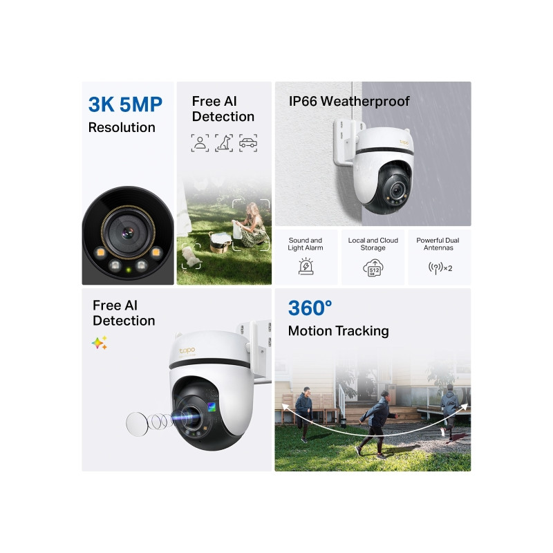 - 3K 5MP Live View-Adopting a 2880 × 1620 resolution, Tapo C530WS offers enhanced video quality to see more details.