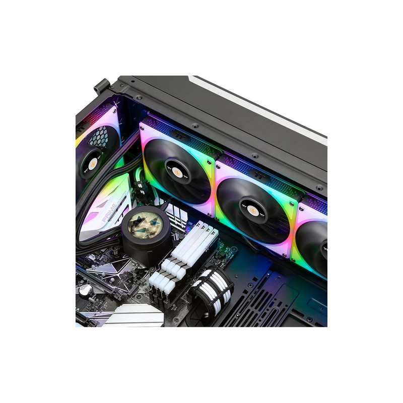 Thermaltake TT Toughliquid Ultra 420. Tip: Sve-u-jednom vodeno hlađenje, Brzina okretanja (min): 500 RPM, Brzina okretanja (max): 2000 RPM, Razina buke (mala brzina): 30,7 dB, Maksimalni protok zraka: 107 cfm, Maksimalni tlak zraka: 3,04 mmH2O. Boja proizvoda: Crno