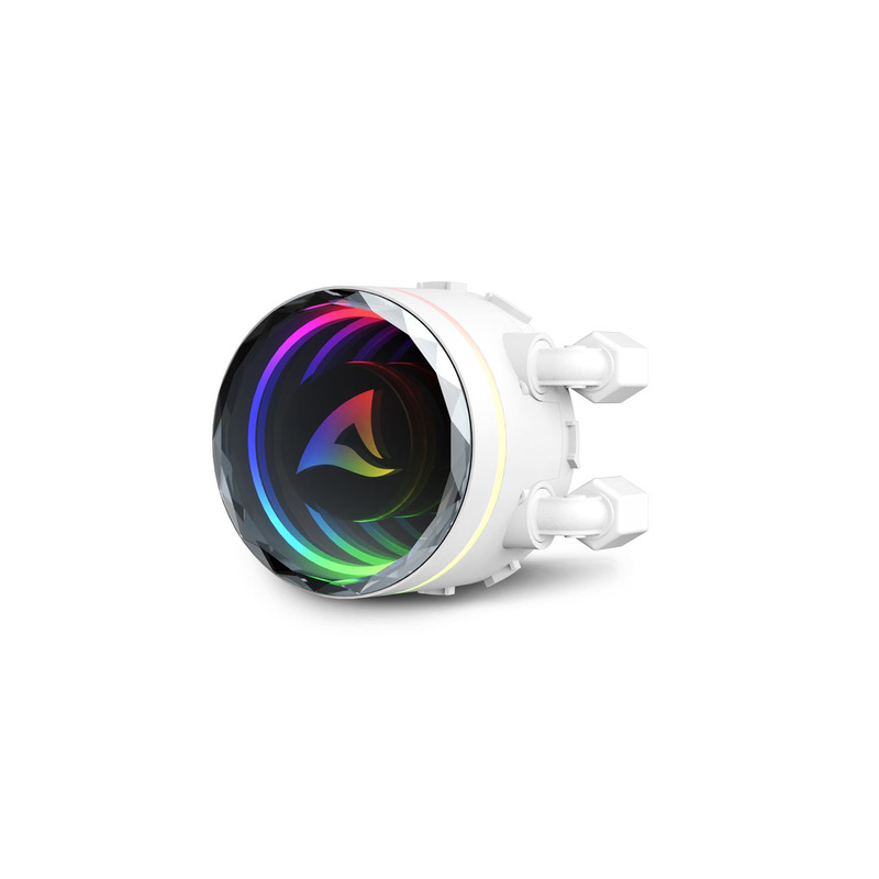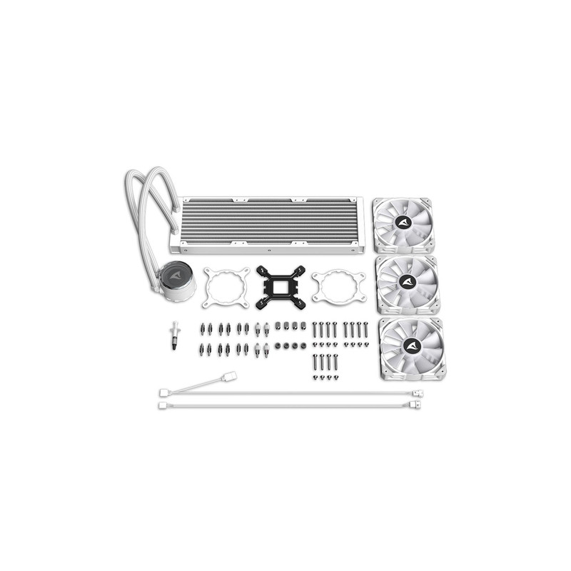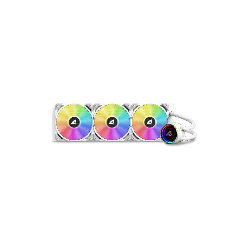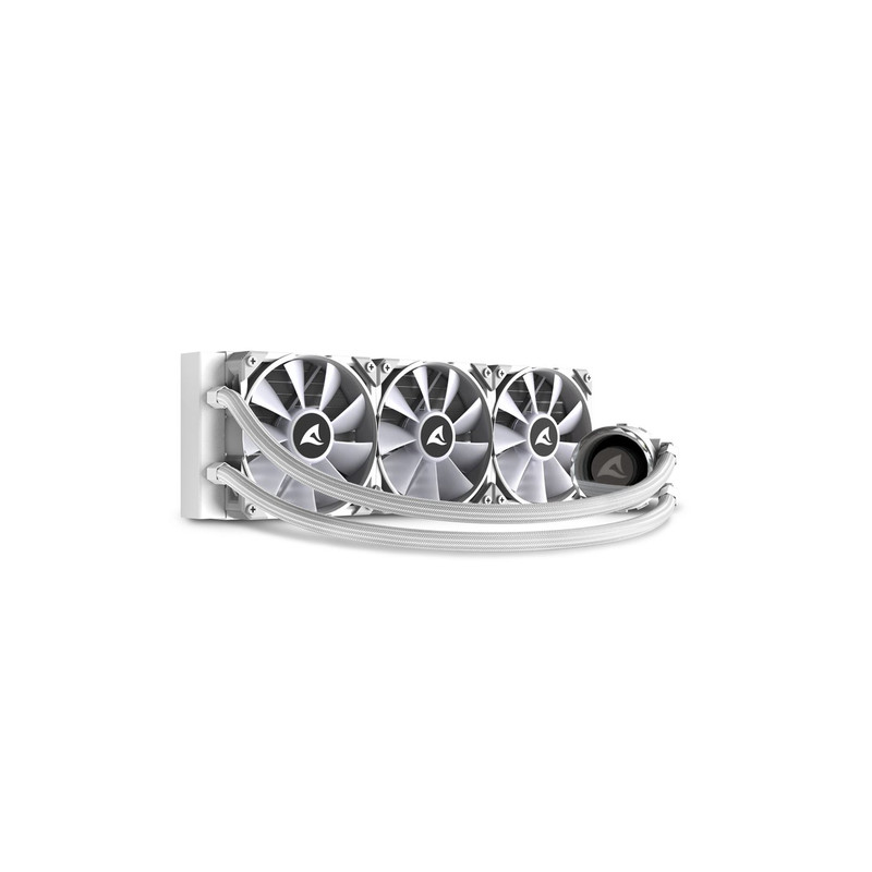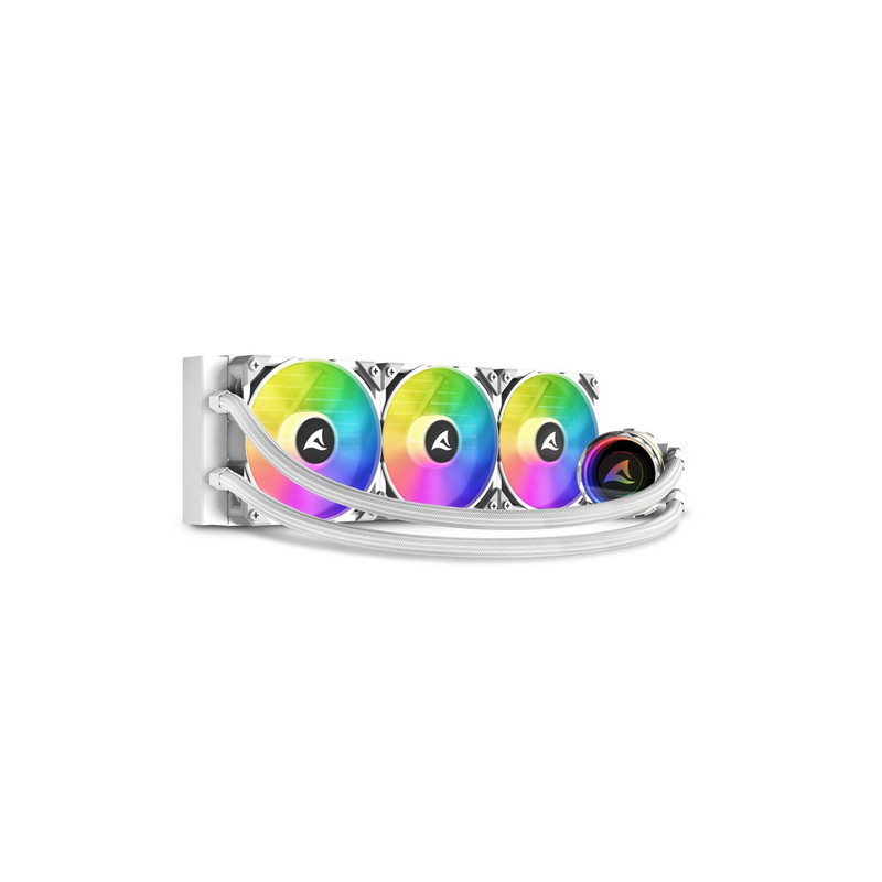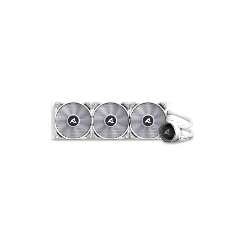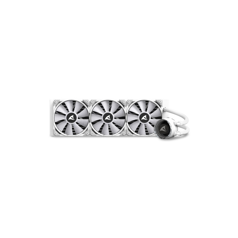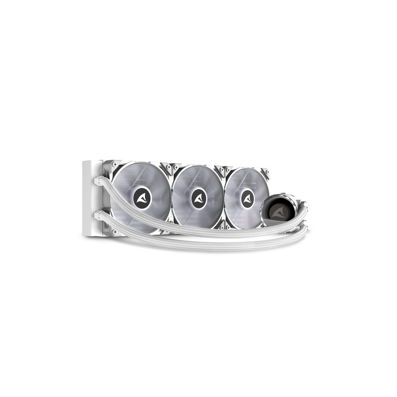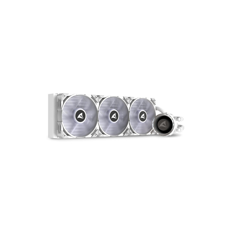 Sharkoon S90. Tip: Sve-u-jednom vodeno hlađenje, Promjer ventilatora: 12 cm, Brzina okretanja (min): 600 RPM, Brzina okretanja (max): 2000 RPM, Razina buke (mala brzina): 35 dB, Protok zraka: 131,93 m³/h, Maksimalni tlak zraka: 2,9 mmH2O. Boja proizvoda: Bijelo
