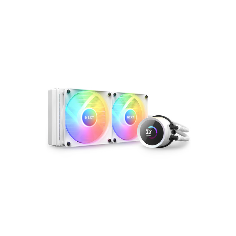 NZXT Kraken 240 RGB. Tip: Sve-u-jednom vodeno hlađenje, Promjer ventilatora: 12 cm, Maksimalni protok zraka: 78,02 cfm, Minimalni tlak zraka: 0,75 mmH2O, Maksimalni tlak zraka: 2,7 mmH2O. Širina: 63,2 mm, Dubina: 53,2 mm, Visina: 12,8 mm. Boja proizvoda: Bijelo