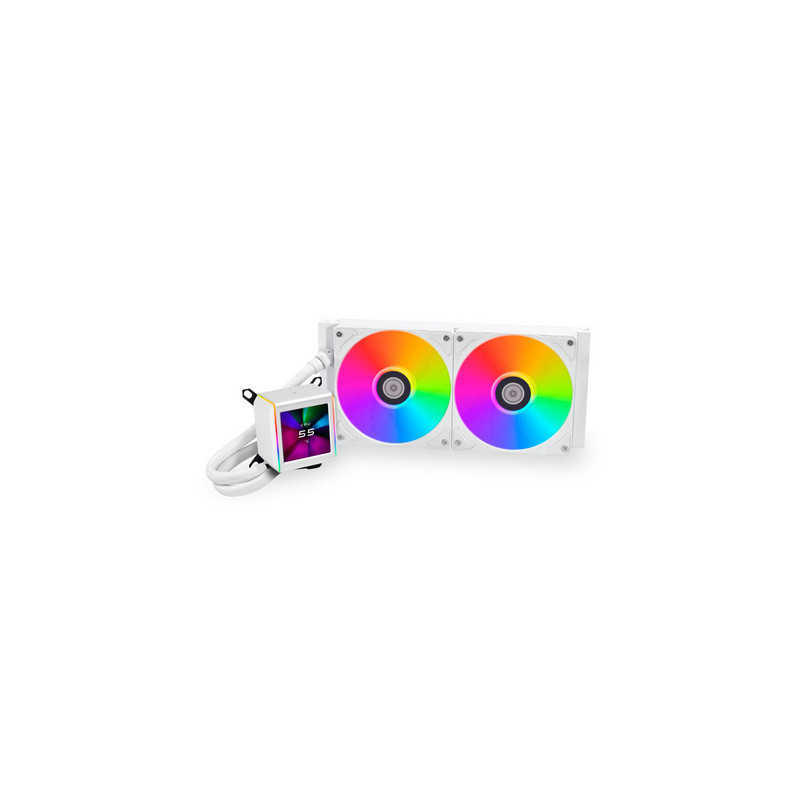 Pumpa je opremljena LCD IPS ekranom promjera 2.88" rezolucije 480 x 480 px i 500 nita svjetline. Omogućuje podešavanje i prikaz videa, temperature i opterećenja procesora ili grafičke kartice, temperature rashladne tekućine, vrijeme, tekst. Uz L-Connect 3 softver je lako prilagoditi. A tu su još 2 RGB LED linije na strani pumpe. Zaslon koristi USB-C kabel za napajanje i rad.