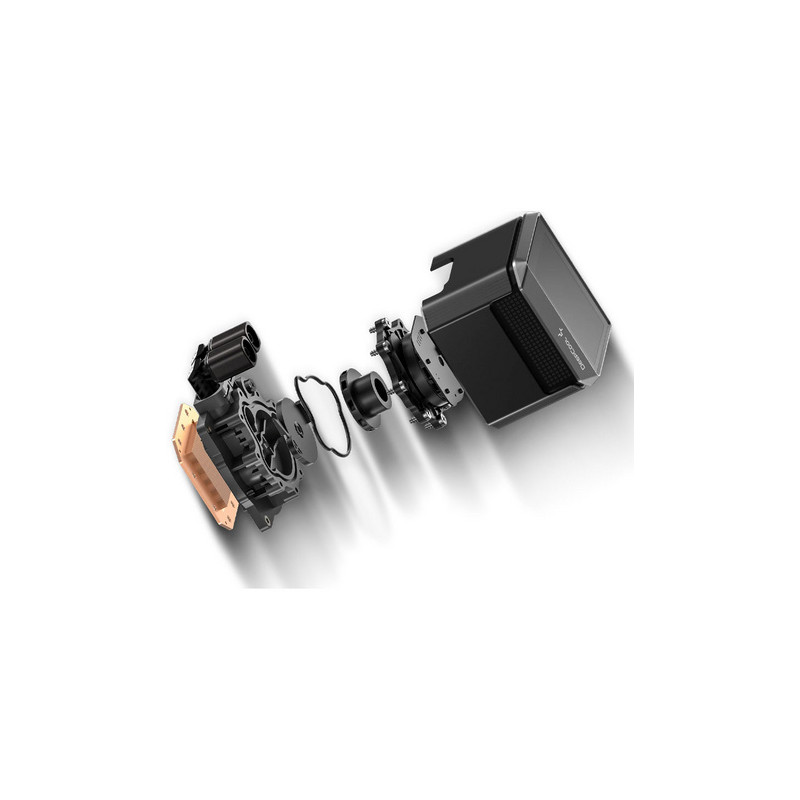 MYSTIQUE 240 ima redizajniran rashladni element koji je optimiziran za bolji prijenos topline i ima kanale intenzivnog protoka od 0,1 mm. Raspored se nalazi iznad vrućih točaka procesora, a precizni razvodnik tekućine osigurava da sve radi učinkovito.