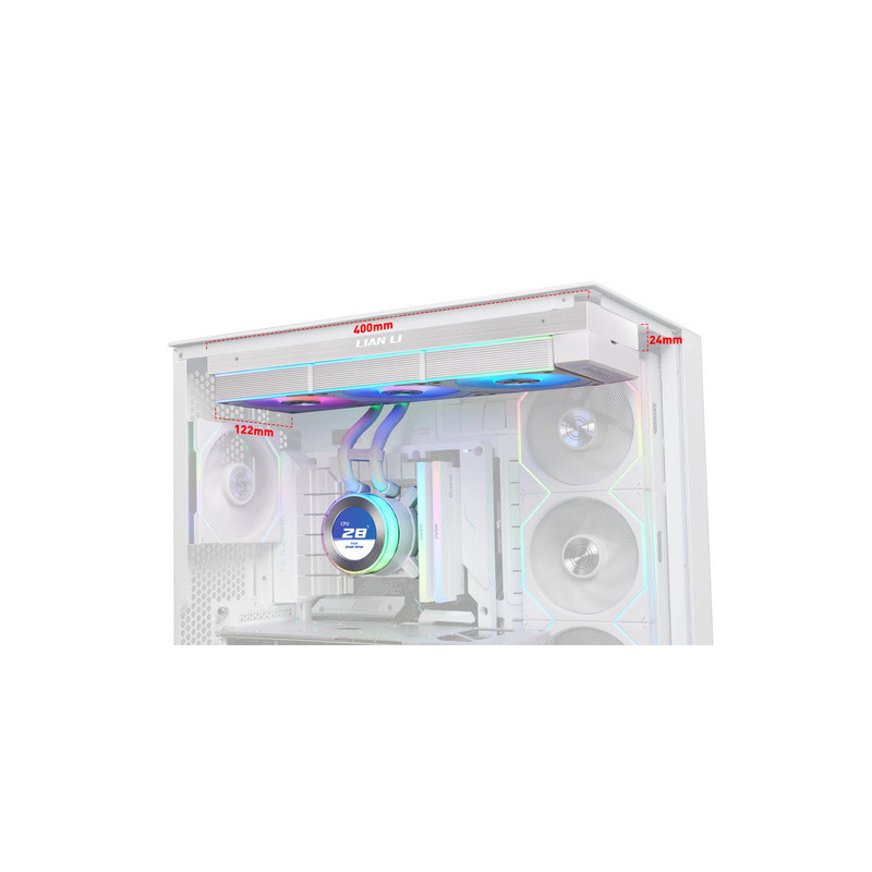Bočno postavljena cijev uz rub radijatora značajno smanjuje vizualnu nered. Kabeli pumpe i USB diskretno su skriveni u pletenoj ovojnici cijevi koja se spaja na radijator. USB kabeli za napajanje i prijenos podataka integrirani su izravno u cijev, što omogućuje potpuno bežičnu i uredniju unutrašnjost računala.