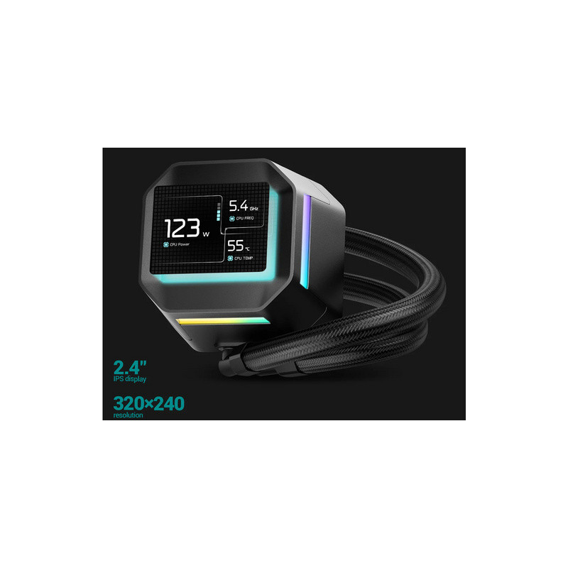 IPS zaslon pruža izvrstan pregled iz različitih kutova. Rezolucija od 320 × 240 px pruža oštru sliku i precizne boje. Tu je i mekano RGB osvjetljenje uz rub zaslona. Softver omogućuje prikaz ključnih sistemskih informacija, prikazivanje MP4 videa ili prebacivanje u ZEN način rada. Također je moguće podesiti svjetlinu i orijentaciju.