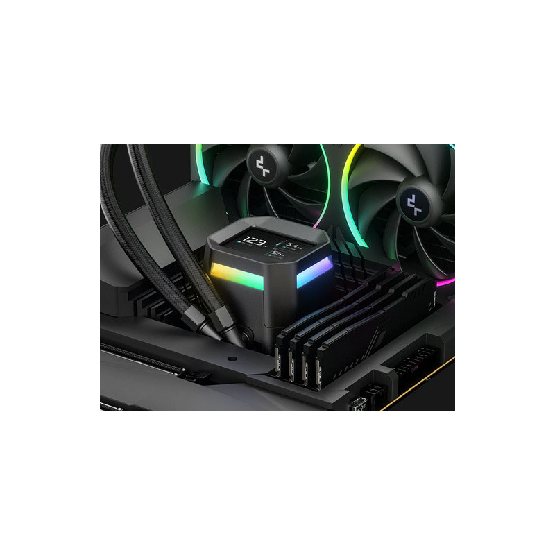 LM240 koristi DeepCool pumpu 6. generacije, dizajniranu za veću toplinsku učinkovitost i tiši rad na današnjim snažnim procesorima. Trofazni, 6-slotni, 4-polni motor s FOC kontrolom pokreće pumpu između 2500 i 3400 okretaja u minuti s preciznošću i stabilnošću. Ventilatori FL12 SE osiguravaju konstantan protok zraka i pouzdano hlađenje čak i tijekom dugotrajne upotrebe. Posebni svjetlosni efekti pružaju žive boje na svim rubovima i skladno se uklapaju u osvjetljenje vašeg sustava.