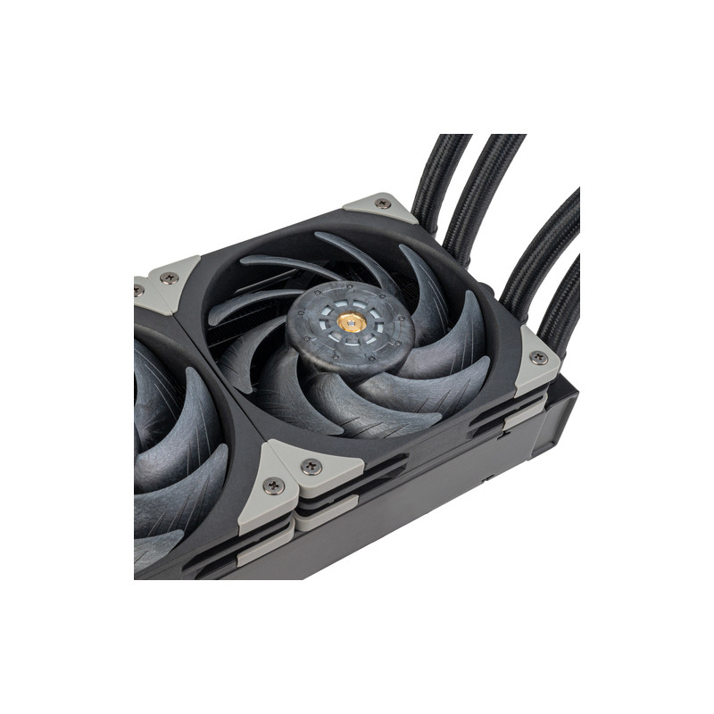 Silverstone SST-XE360PDD. Tip: Set za vodeno hlađenje, Promjer ventilatora: 12 cm, Brzina okretanja (min): 800 RPM, Brzina okretanja (max): 3000 RPM, Maksimalni tlak zraka: 5,2 mmH2O, Vrsta ležaja: Dvostruki kuglični ležaj. Boja proizvoda: Aluminij, Crno, Sivo