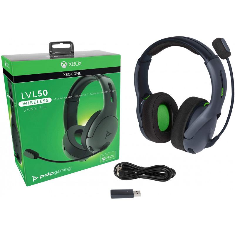 Play at the top of your game with the unbeatable comfort, long-lasting battery life, and powerful balanced sound of the PDP Gaming LVL50 Wireless Stereo Gaming Headset for Xbox. Communicate clearly with your team through the flexible, noise-canceling mic on the PDP Gaming LVL50 Wireless Stereo Gaming Headset. Make volume adjustments on the fly with convenient on-ear audio controls, plus a flip-to-mute mic feature. The USB dongle plugs directly into your Xbox for a simple set-up with a range up to 40 feet, and a battery life of up to 16 hours. Enjoy dynamic sound through a pair of powerful 50mm High-Definition drivers. With breathable nylon-mesh over-the-ear cushions and an adjustable lightweight headband, this headset keeps you comfortable during long gaming sessions so you can focus on leading your team to victory! Compatible with Windows Sonic so you can enjoy spatial sound for gaming on Xbox Series X|S, Xbox One, and Windows 10 PCS. Features Wireless connection of up to 40 feet, with a long-lasting battery life of up to 16 hours Breathable, lightweight build for long gaming sessions Hear every command with powerful 50mm audio drivers Bi-directional, noise-canceling mic delivers clear communication, or mute your mic in one swift motion with the flip-to-mute feature Compatible with Windows Sonic so you can enjoy spatial sound for gaming on Xbox Series X|S, Xbox One, and Windows 10 PCS Officially licensed by Xbox