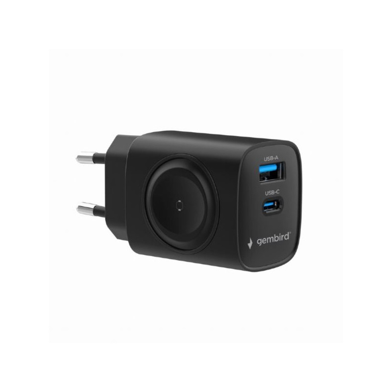 Gembird 2-in-1 20 W Apple Watch phone fast charger, black, TA-UC-PDQCW20-01-BK - 2-port 20 W USB fast charger: supports both QC 3.0 and PowerDelivery (PD) specification Type-C port supports 20 W PD, Type-A port supports 20 W QC 3.0 Wireless charging pad to easily recharge your Apple watch Intelligent over-current, over-voltage, short circuit and overheat protection