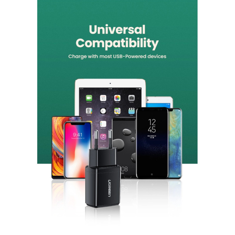 - Kompaktni zidni punjač s jednim USB priključkom. Izrađen od visokokvalitetnih, vatrostalnih materijala (ABS + PC). Ima niz sigurnosnih certifikata i inteligentan sustav upravljanja koji štiti opremu od pregrijavanja, prekomjernog punjenja ili kratkog spoja. Osim toga, širok raspon napona napajanja (100 - 240 V), zahvaljujući kojem ga možete sigurno koristiti diljem svijeta.