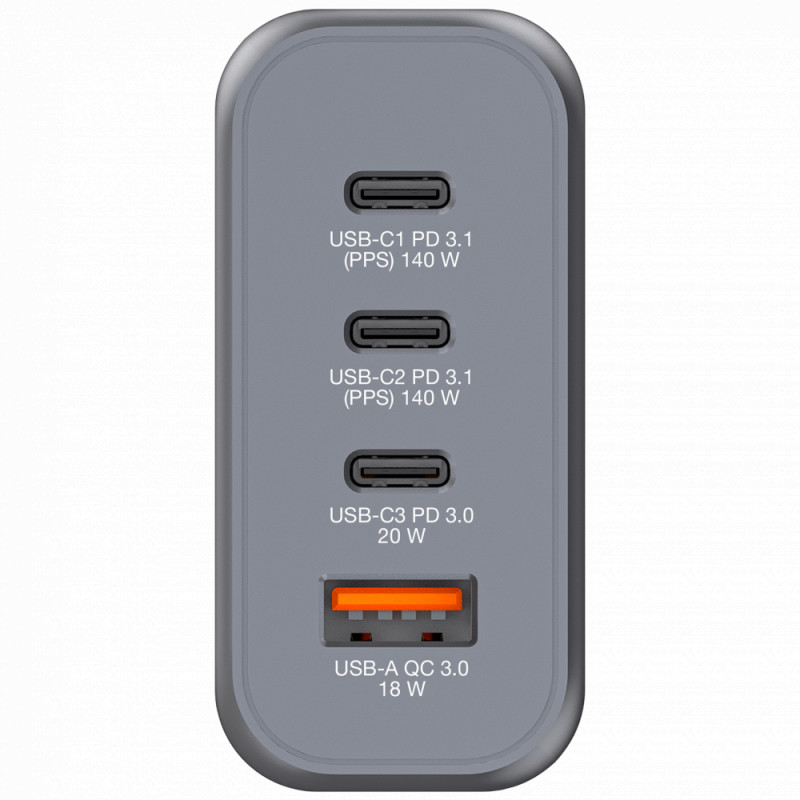 Opremljen s 2 x USB-C® PD 3.1 do 140 W, 1 x USB-C PD 3.0 do 20 W i 1 x USB-A QC 3.0 do 18 W