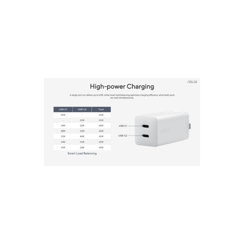 Ideal for users who need a reliable, fast, and compact charging solution, the ASUS 65W USB-C GaN Charger offers convenience and performance for all your charging needs.